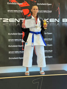 Am 6. September 2025 fand in Heilbad Heiligenstadt die „11. Internationale Eichsfeld Open“ Karate-Meisterschaft mit rund 600 Teilnehmern aus 55 Teams und drei Nationen statt. Sanya Kuffer aus unserer Karate-Abteilung trat in zwei Kategorien an.